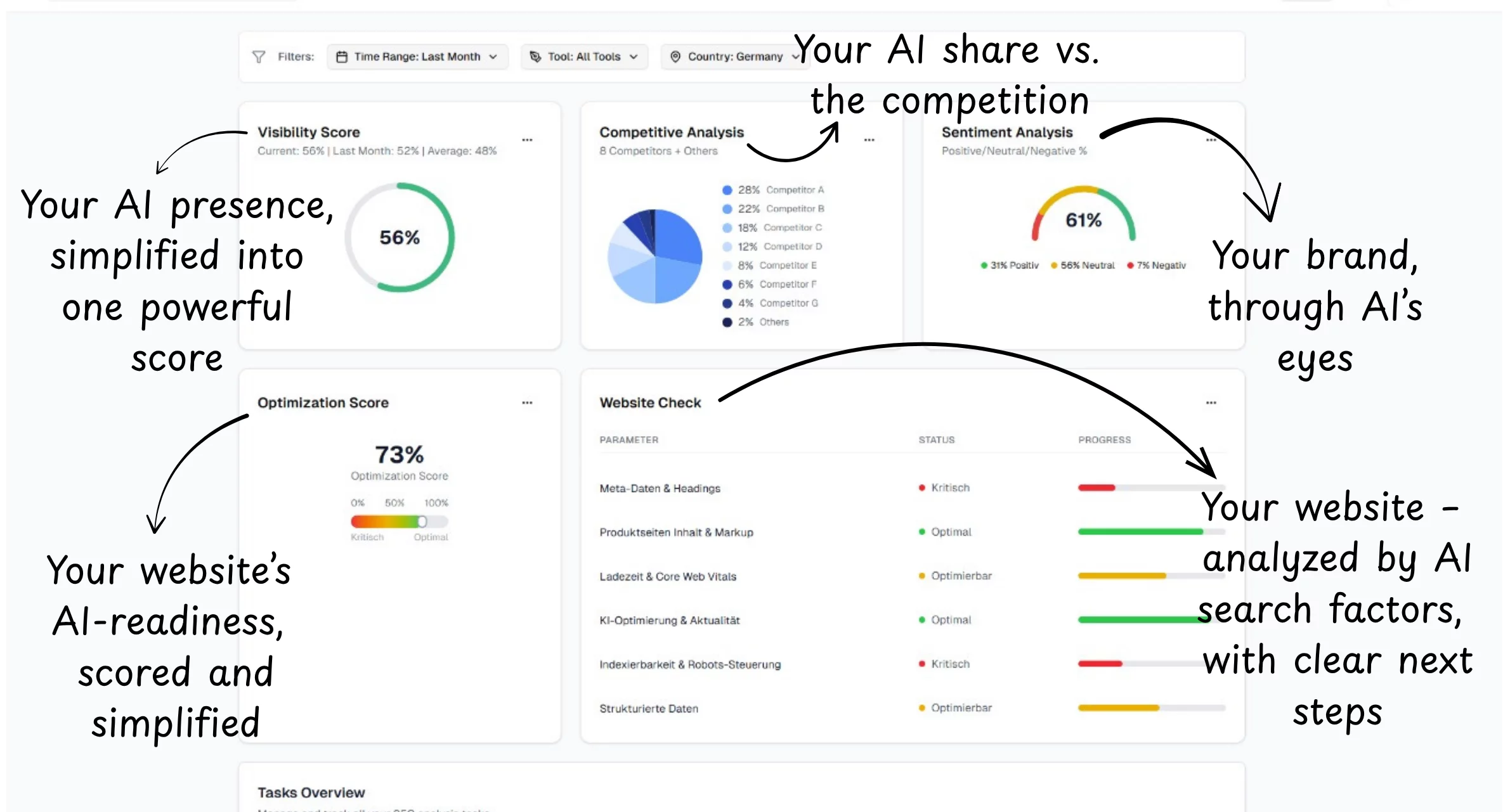 Being visible in LLM results means more reach, stronger trust, and a clear edge over competitors – today and tomorrow.
