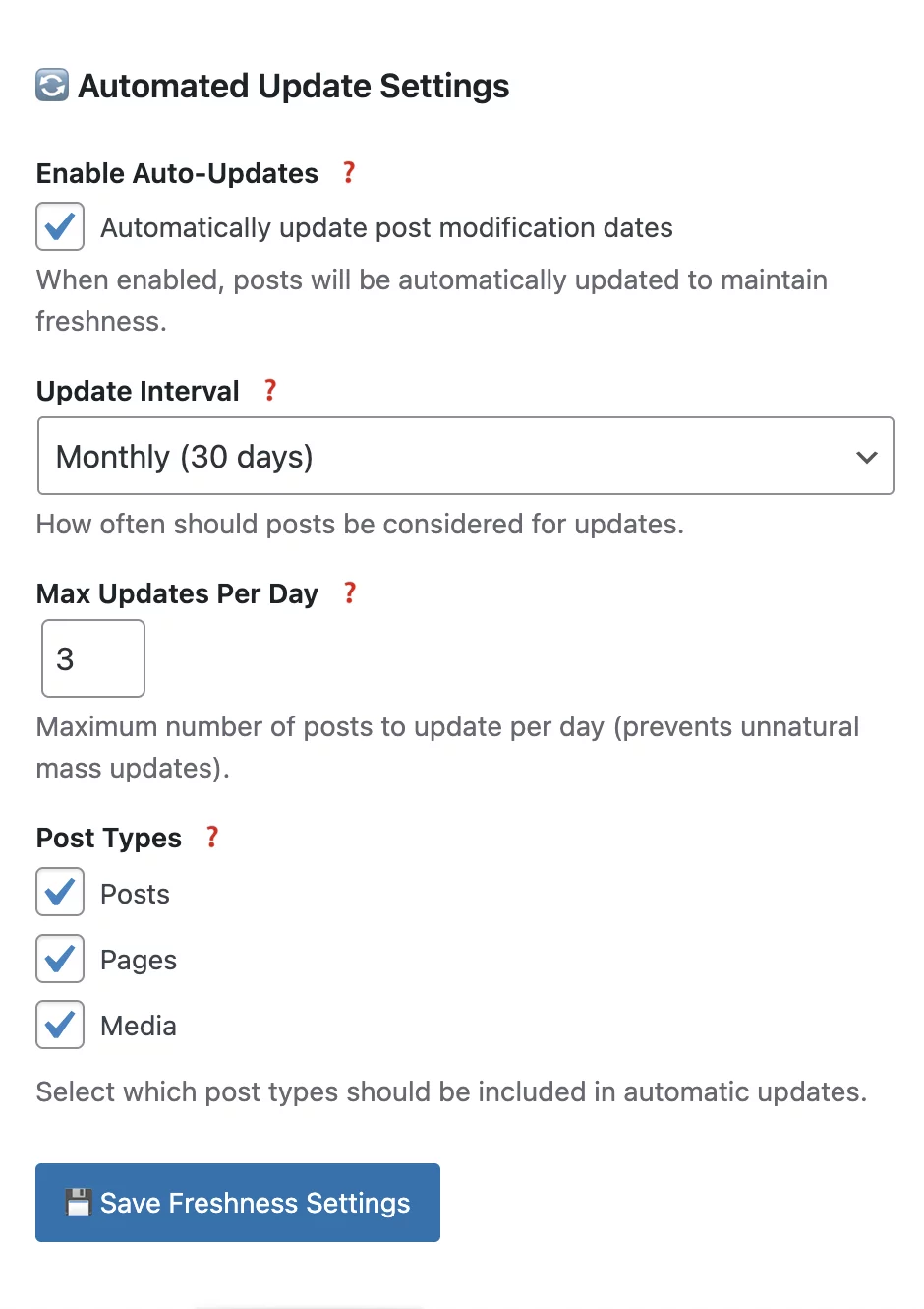 Smart timestamps and background updates ensure your pages stay relevant for AI